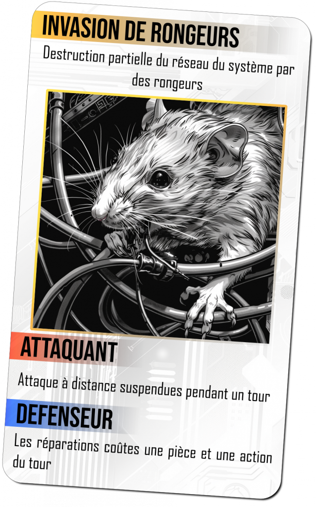 Les cartes « action» regroupent toutes les attaques et mesures que les personnages peuvent réaliser pour atteindre leur objectif;